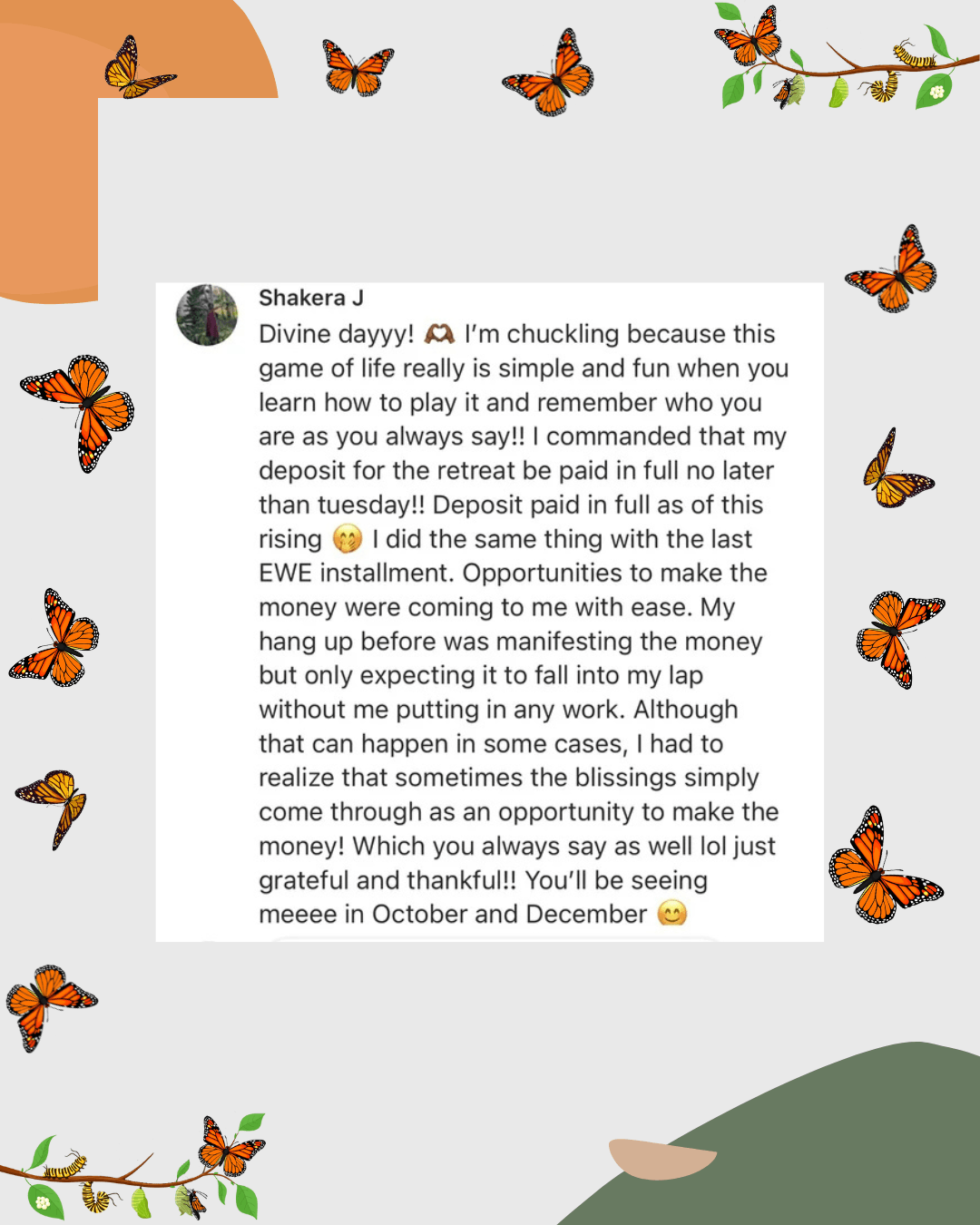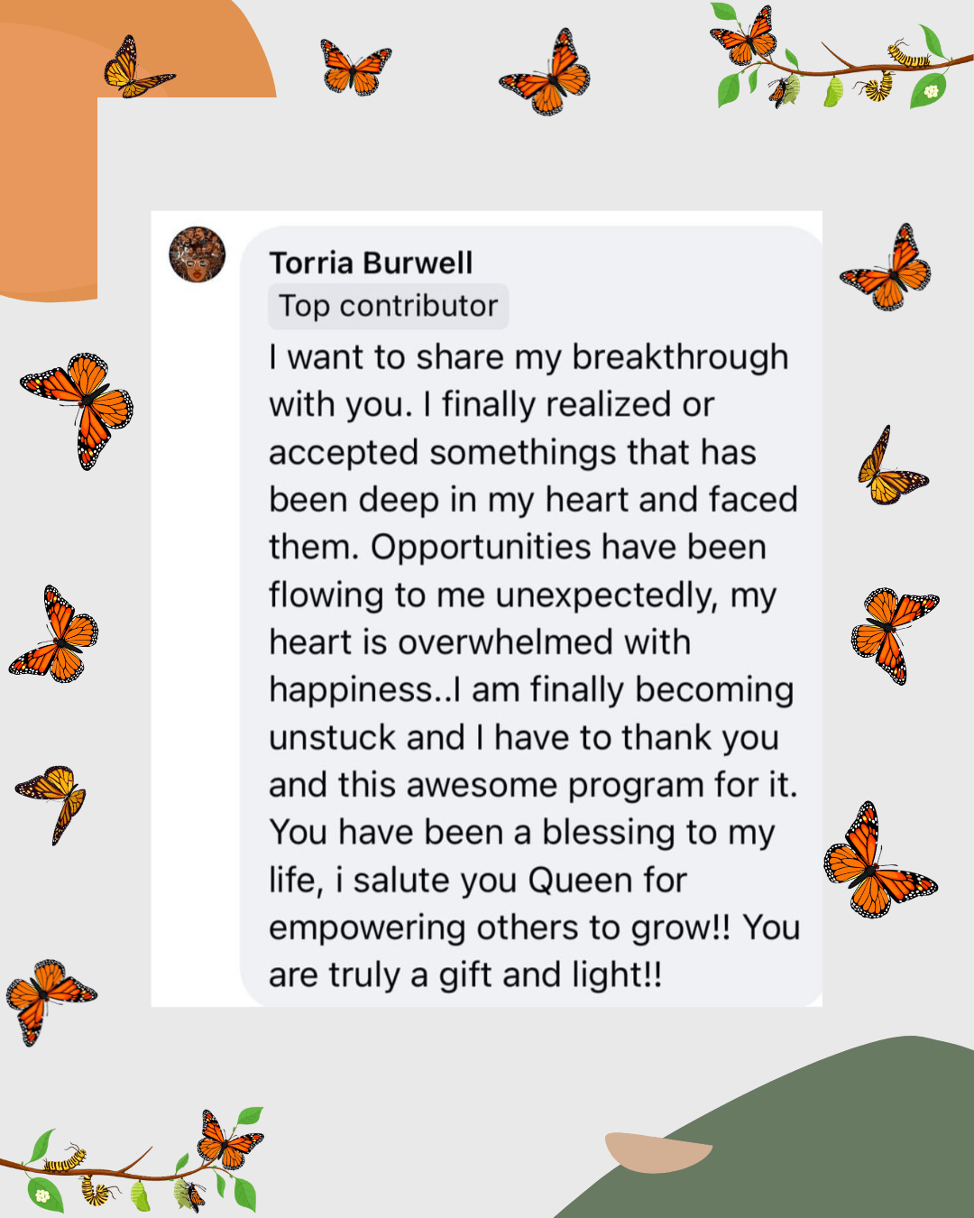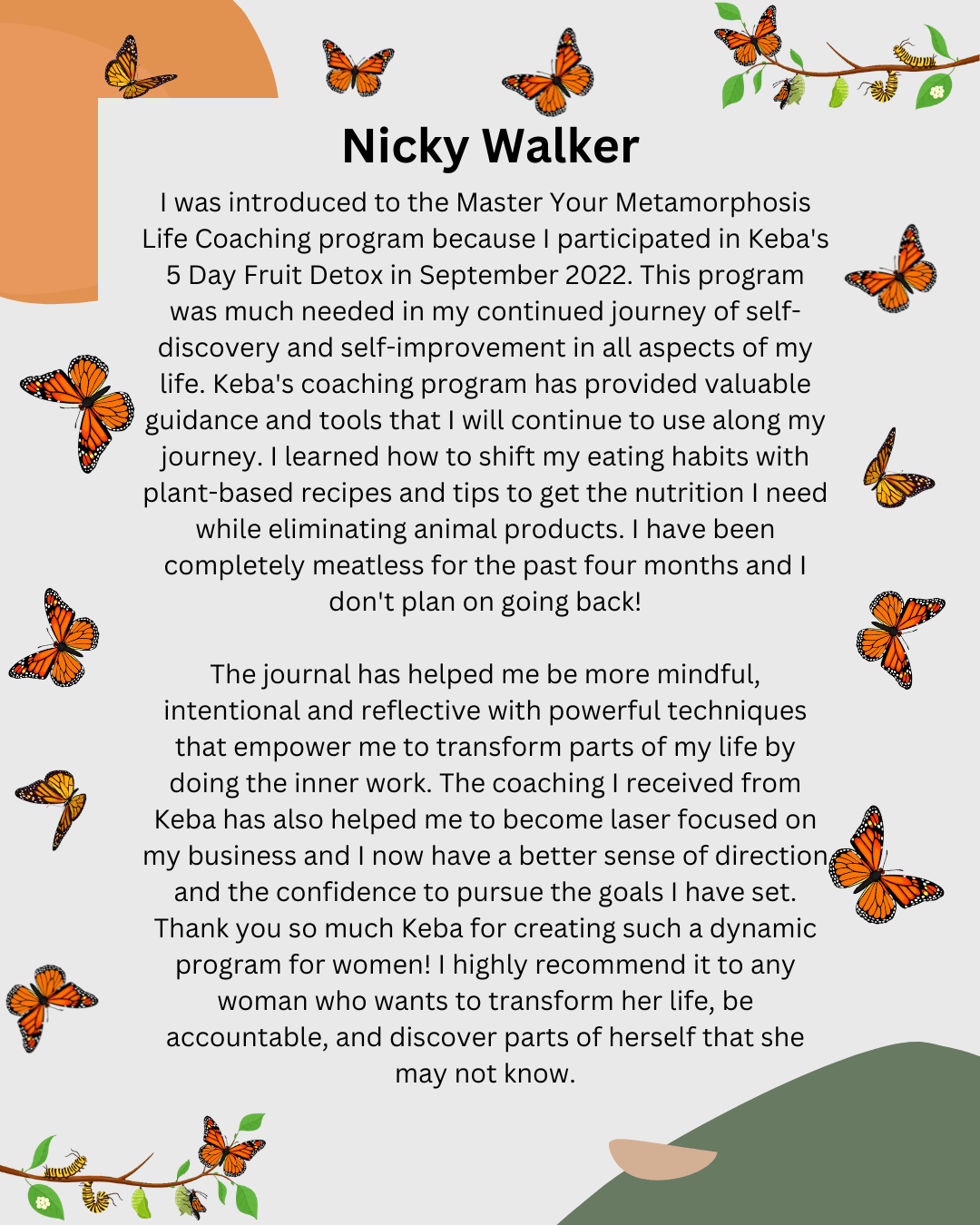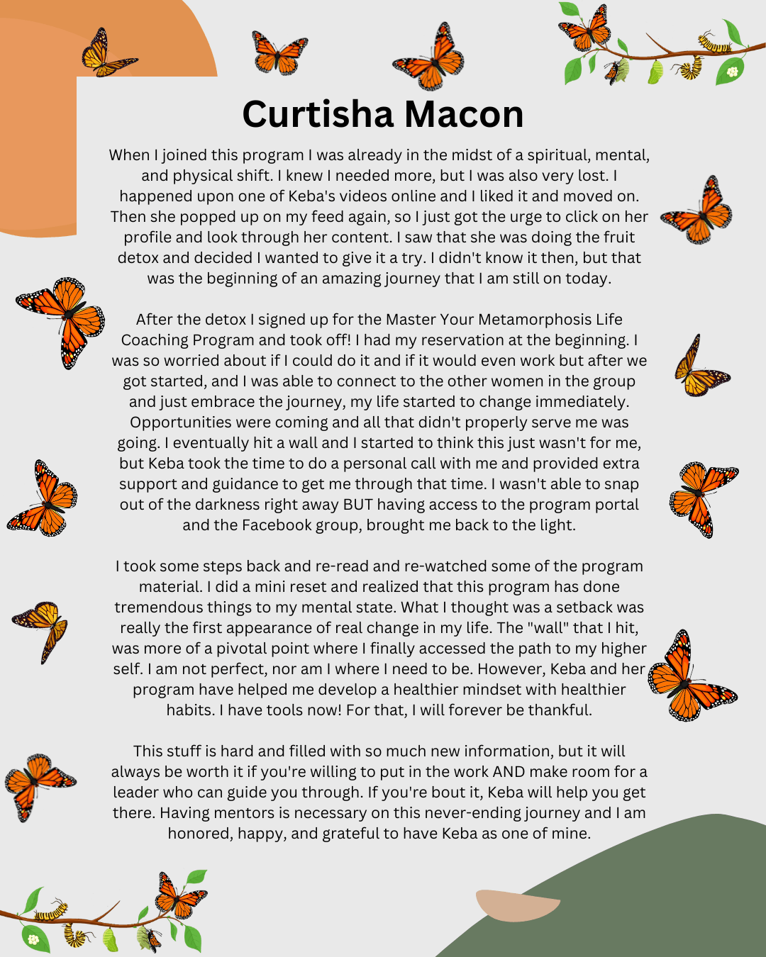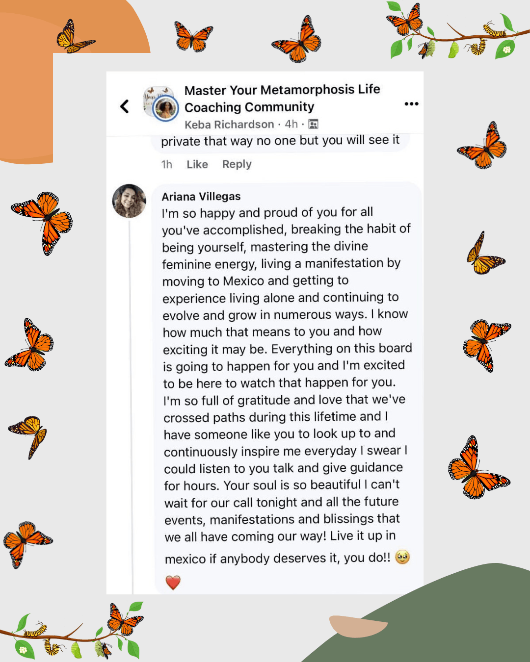 In the Master Your Metamorphosis Mentorship Community, I’ll walk with you through the process of reconnecting with your highest self. Together, we’ll uncover the blocks that have kept you stuck, and you’ll learn how to align with your true purpose, so you can begin manifesting the life you’ve always dreamed of with ease and joy.