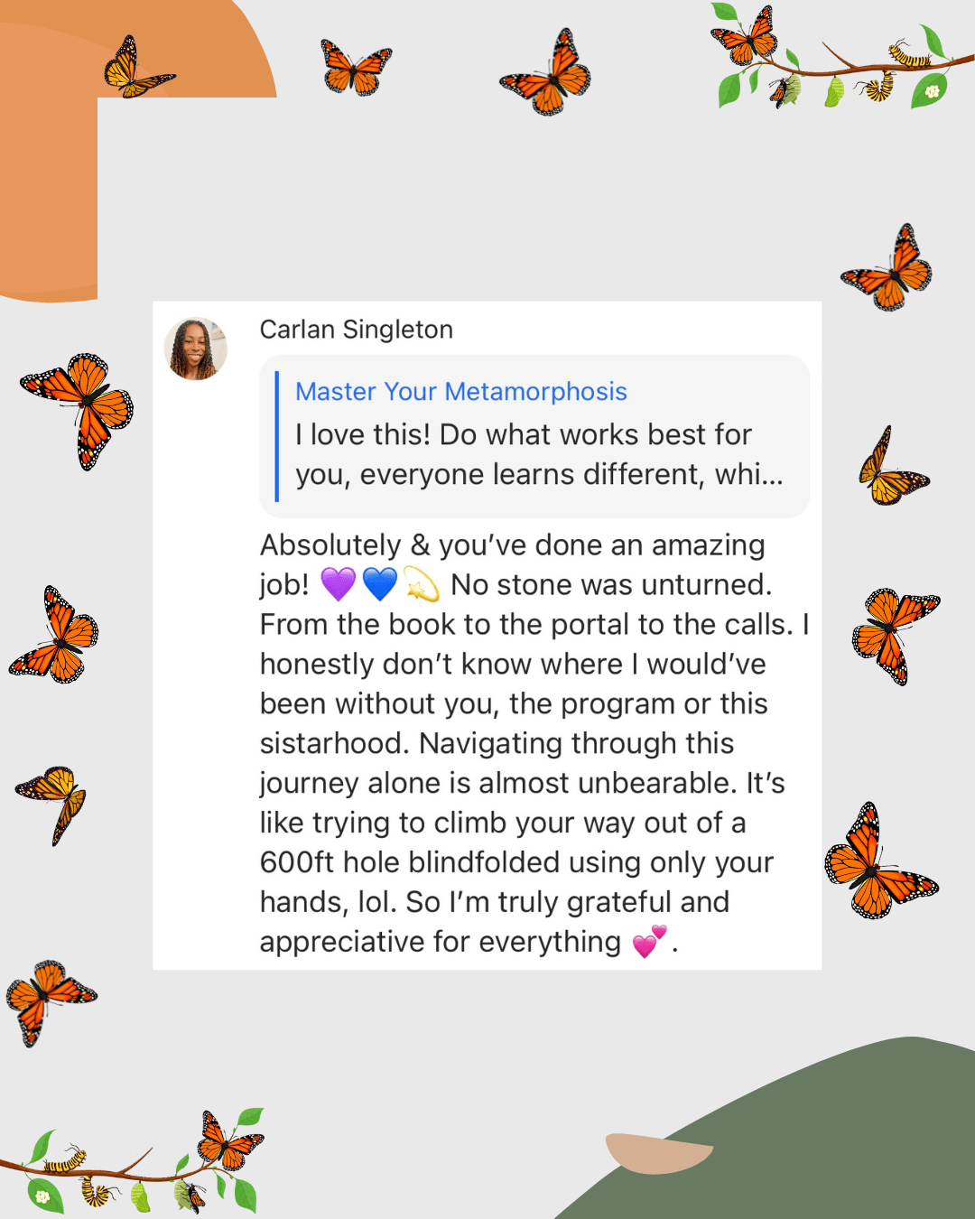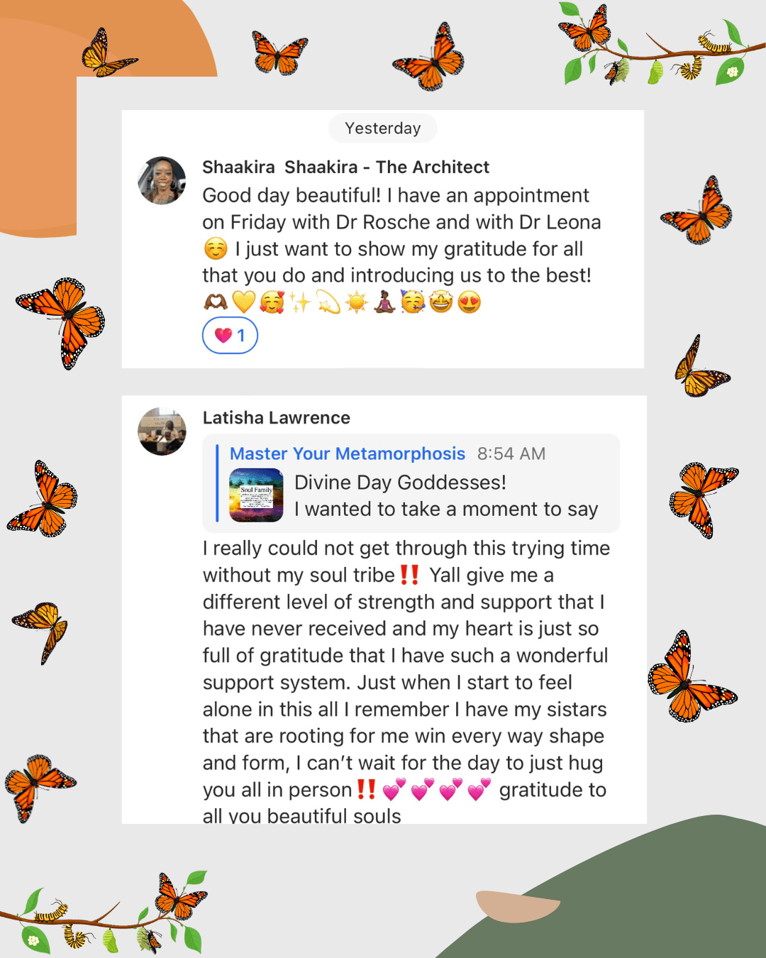 This isn’t about feeling overwhelmed or stuck in the process of healing, becoming self-aware, or spiritually ascending. The journey doesn’t need to be complicated or confusing. It can be simple, clear, and empowering. That’s exactly why I created the Master Your Metamorphosis Mentorship Community to provide a clear, easy-to-follow blueprint that allows you to heal, rise, and thrive.