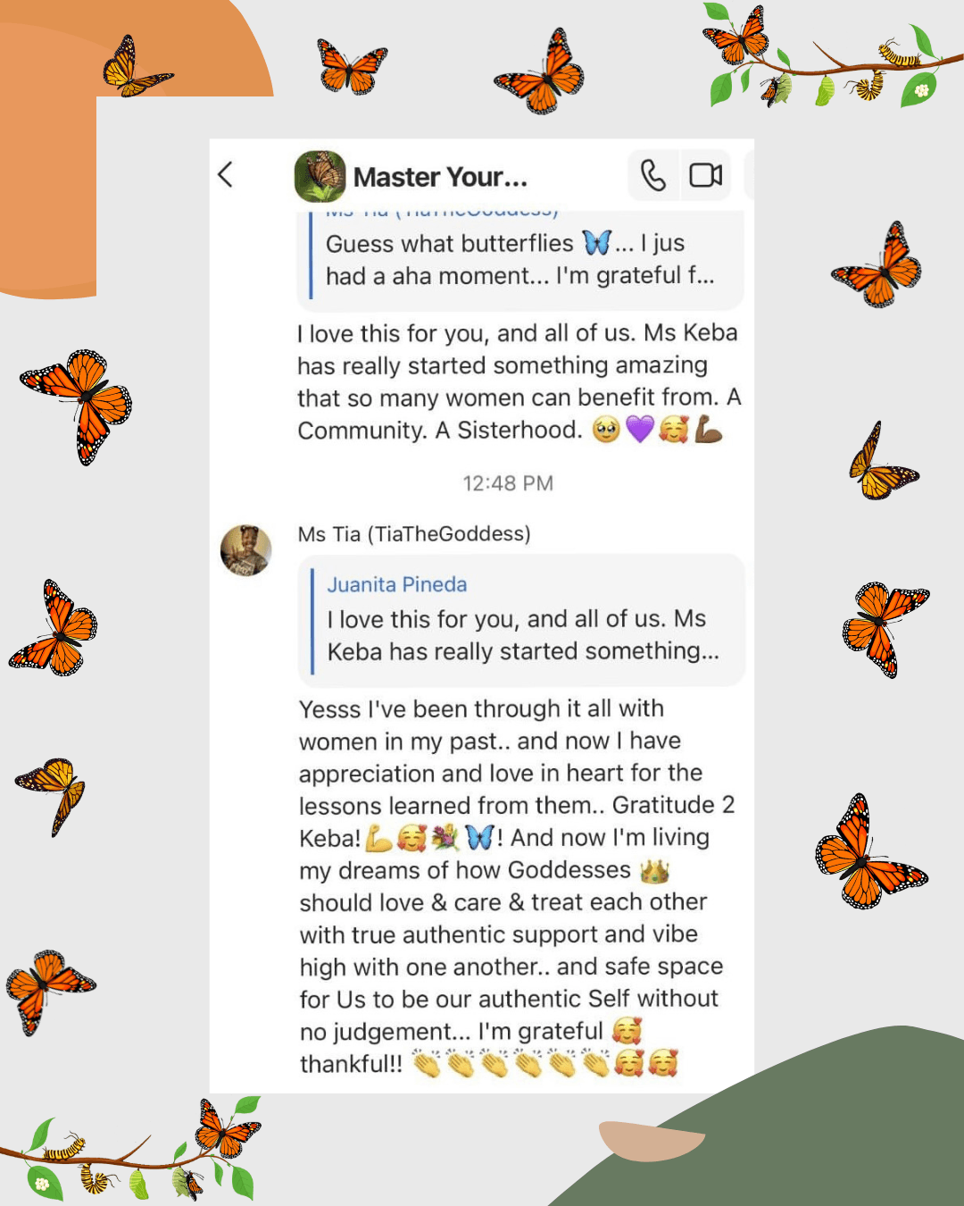 The Master Your Metamorphosis Mentorship Community is a sacred sisterhood, a tribe of powerful, like-minded women on the same journey of healing, growth, and spiritual awakening. Here, we rise together. You’ll have the support, guidance, and tools you need to stop feeling stuck and start manifesting your desires. It’s time to stop letting fear and overwhelm control your life.