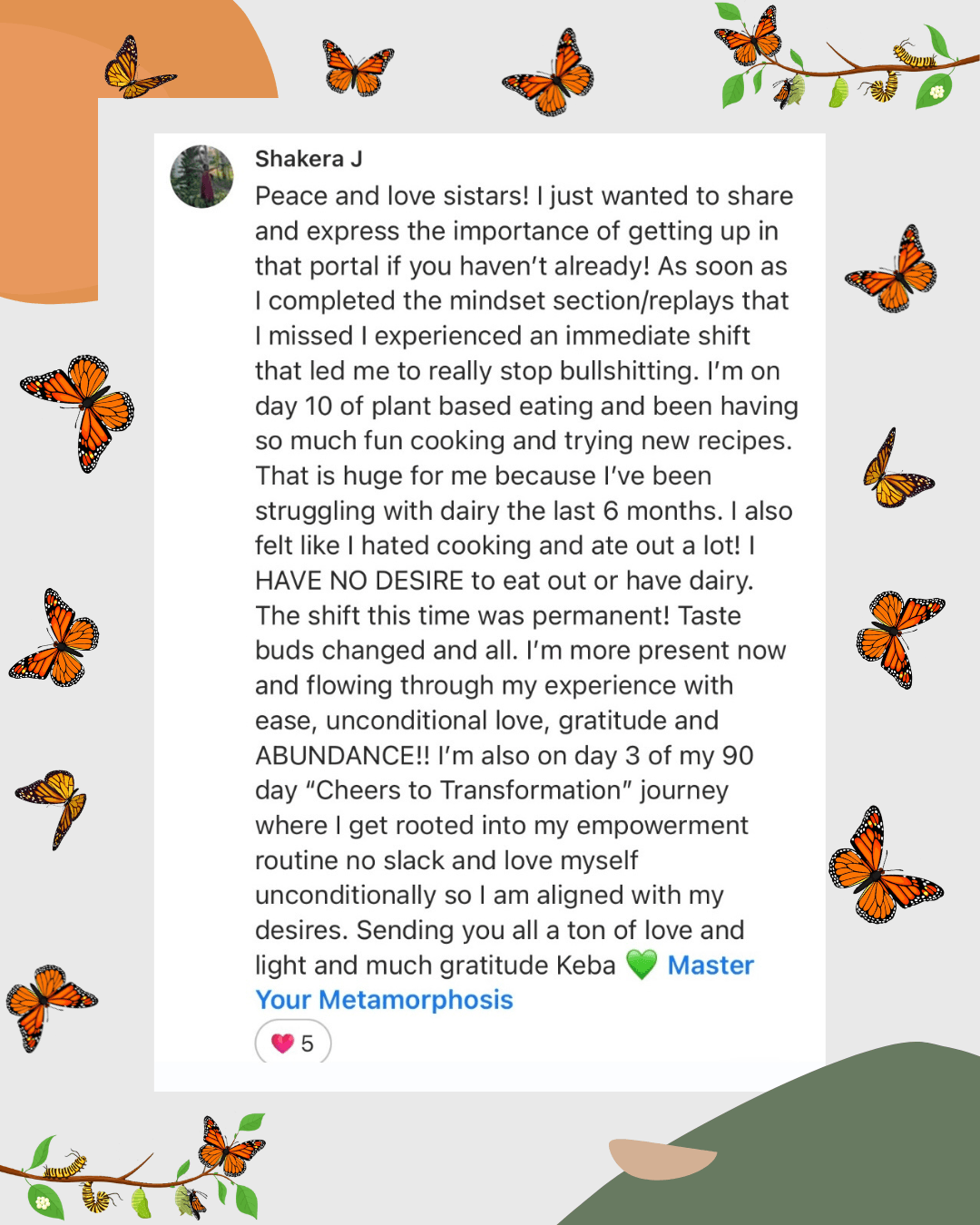 If you’re ready to make radical changes in your life join me and the tribe in the Master Your Metamorphosis Mentorship Community!